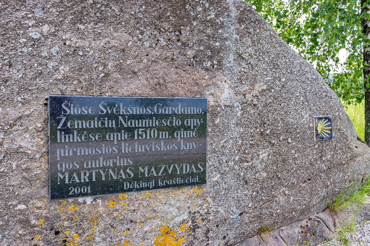 Laukstėnų kaime, prie kelio Žemaičių Naumiestis – Gardamas – Švėkšna, stovi paminklinis akmuo su užrašu: „Šiose Švėkšnos, Gardamo, Žemaičių Naumiesčio apylinkėse apie 1510 m. gimė pirmosios lietuviškos knygos autorius MARTYNAS MAŽVYDAS 2001 Dėkingi kraštiečiai“. Paminklinis akmuo atidengtas 2001 m. gegužės 7 d., kuriuo pažymima pirmosios lietuviškos knygos autoriaus Martyno Mažvydo manoma gimtinė.