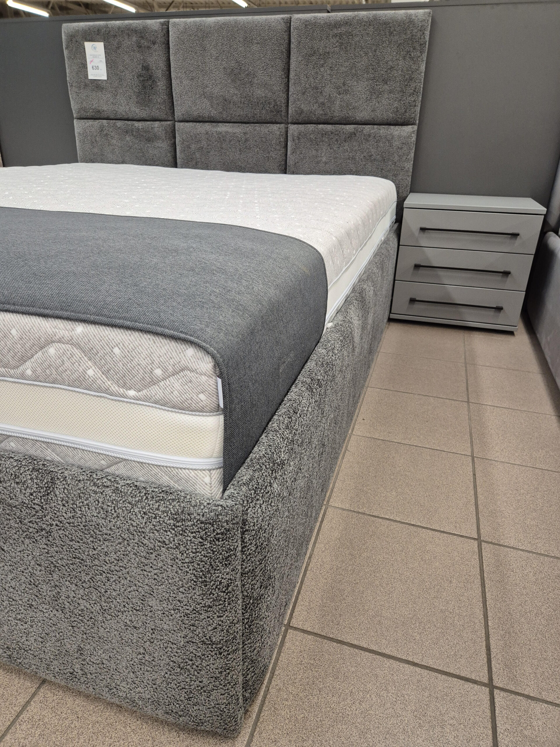 Tai modernaus dizaino, gobelenu aptraukta dvigulė lova su patogiu pakeliamu grotelių mechanizmu ir erdvia patalynės dėže.