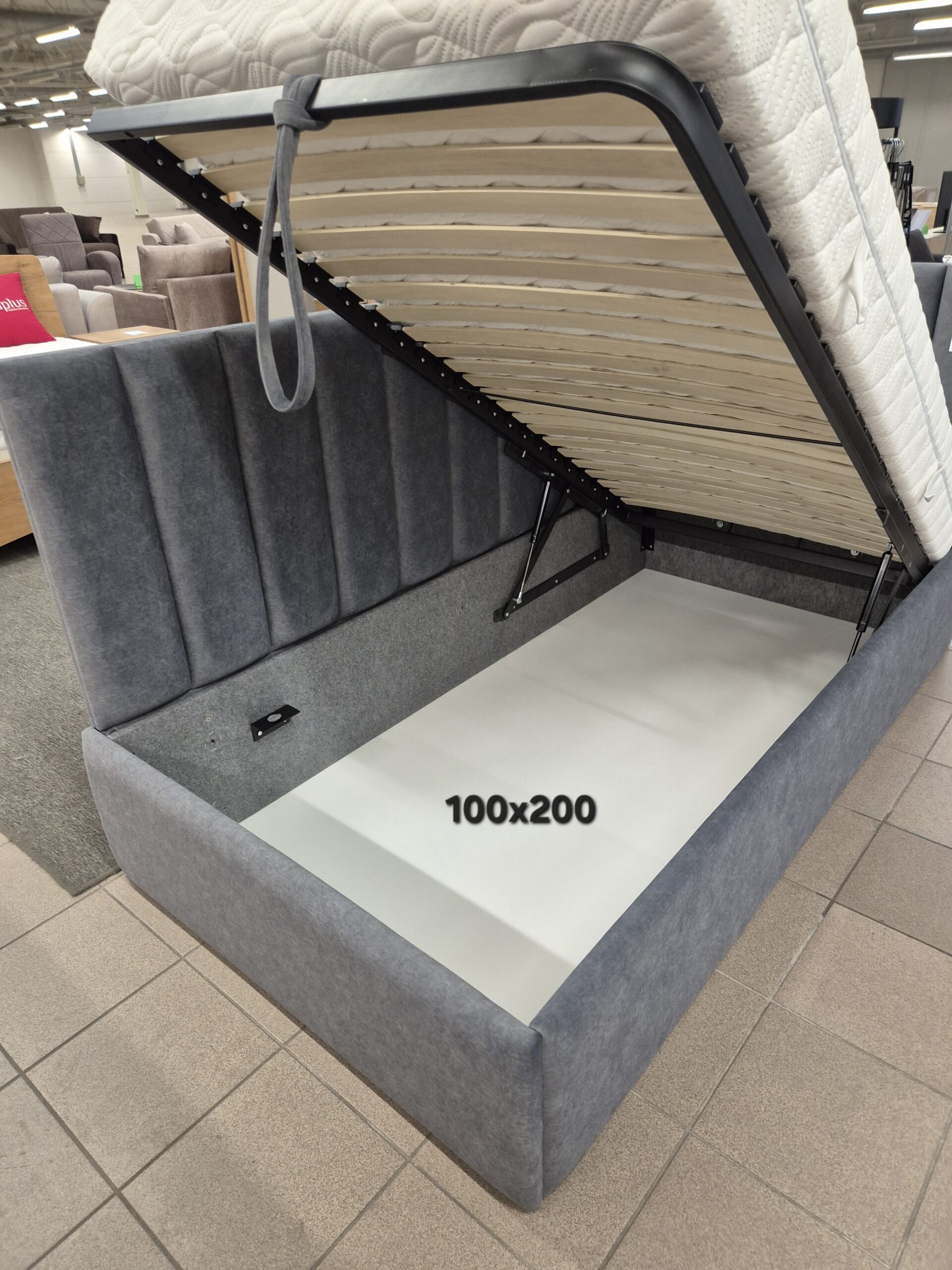 Šiuolaikiško dizaino lova išsiskiria aukštu, minkštu galvūgaliu bei šoninėmis sienelėmis, suteikiančiomis jaukumo ir papildomo komforto. Tvirta grotelių konstrukcija užtikrina optimalų čiužinio vėdinimą ir patikimą atramą. Lova turi patogią kilstelėjimo rankenėlę, leidžiančią lengvai pasiekti erdvią daiktadėžę – praktišką sprendimą tvarkai namuose. Puikus pasirinkimas ieškantiems funkcionalumo, patogumo ir elegantiško stiliaus.
