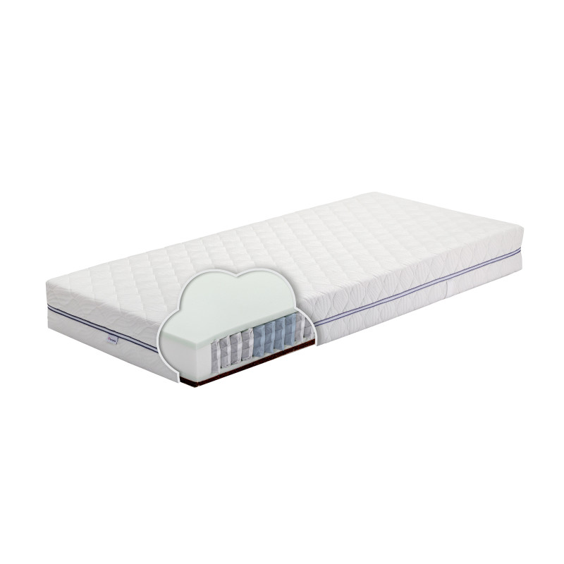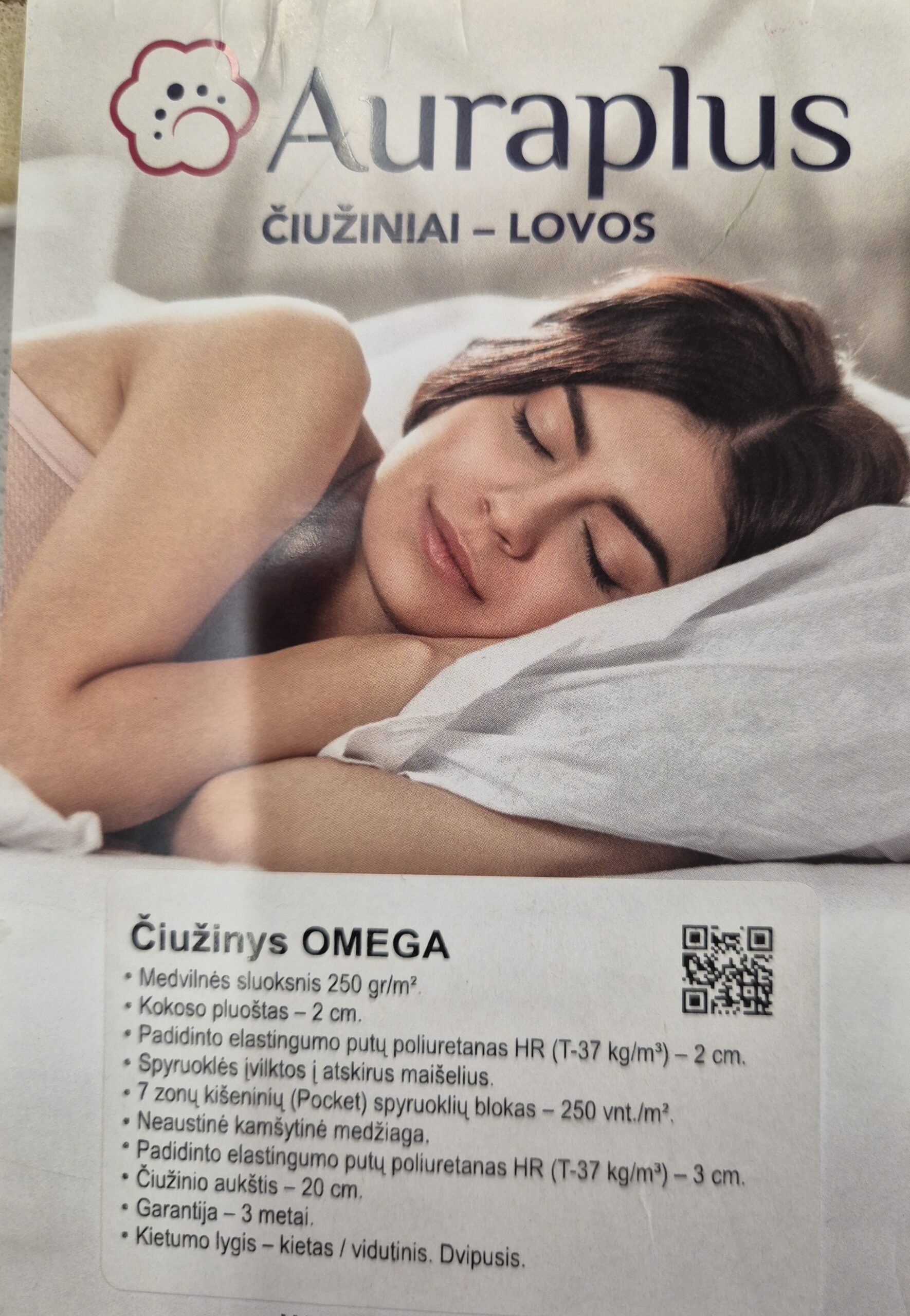 Spyruoklinis čiužinys  OMEGA- dvipusis, sukurtas atsižvelgiant į ortopedinius principus. Jis tinkamai paskirsto kūno svorį ir padeda išlaikyti taisyklingą stuburo padėtį miego metu. Viena pusė, putų poliuretano derinys su kokoso pluoštu bei natūralia medvilne, pasižymi išskirtiniu standumu ir laidumu orui, o kitoje pusėje esantis HR padidinto elastingumo putų poliuretano lakštas, suteikia daugiau minkštumo. Pasirinkite sau tinkamiausią pusę. Tai puikus pasirinkimas žmonėms, mėgstantiems ar esant poreikiui, besirenkantiems kietesnę lovą miegui.  Čiužinys ypatingai laidus orui kas padeda jam ilgiau išlikti higienišku. Čiužinio šonuose esančios vėdinimo angelės užtikrina maksimalią oro cirkuliaciją, padeda išlaikyti sausą miego paviršių visą naktį. Kokoso pluoštas turi antibakterinių savybių, yra ypatingai laidus orui, ilgai išlieka tvirtu ir elastingu. Dvipusis čiužinys pagamintas iš aukštos kokybės, žmogui ir aplinkai draugiškų medžiagų.