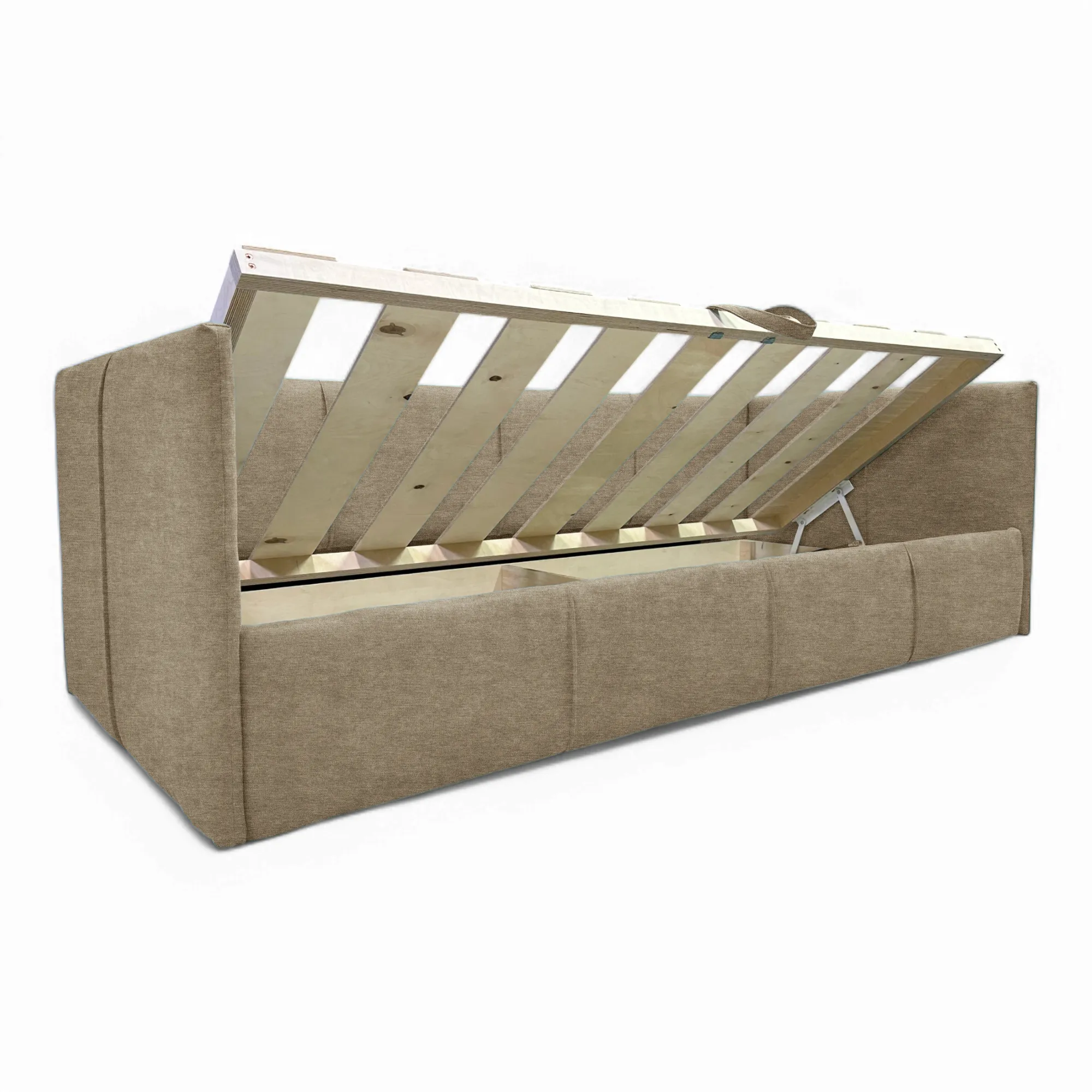 Viengulė lova su patalynės dėže 90×200 – funkcionali ir patogi miegamojo lova kasdieniam naudojimui.