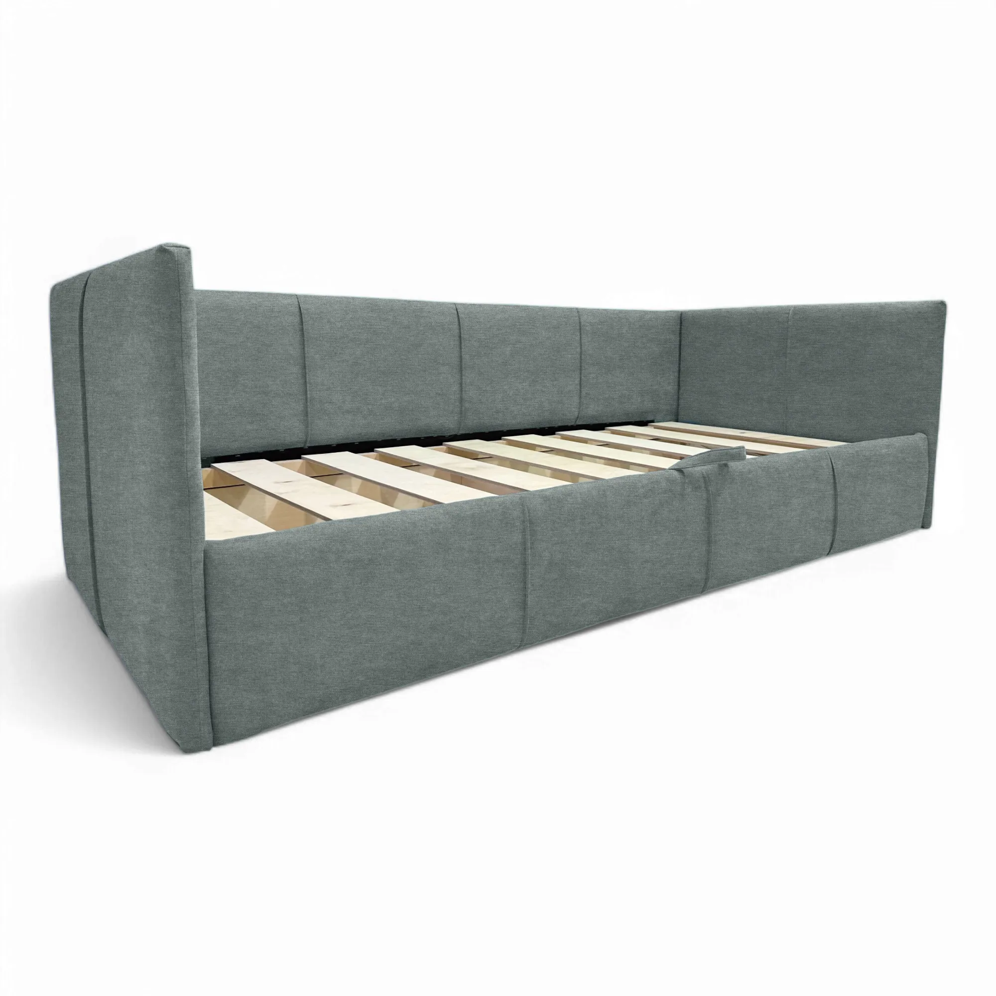 • Minkštu audiniu aptrauktas rėmas – saugus, modernus ir lengvai derinamas su įvairiais interjero stiliais.