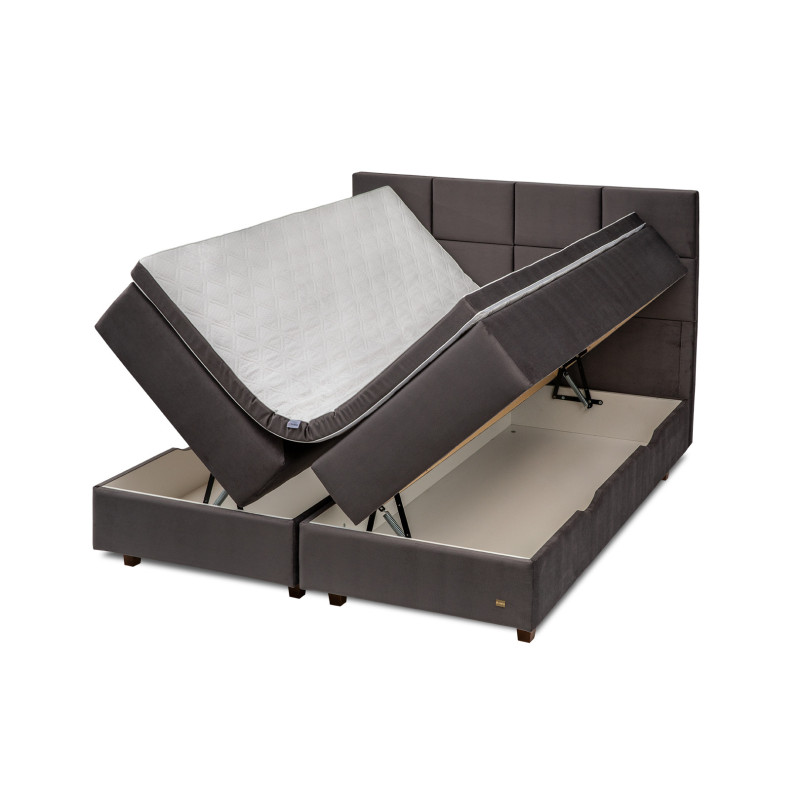 Kontinentinė lova PALERMO- tai poilsis be kompromisų, tai praktiškumas ir patogumas viename. Erdvi patalynės dėžė, pasiekiama lengvu judesiu, dėka kokybiškų tyliųjų dujinių pakėlėjų, leis palaikyti nepriekaištingą tvarką miegamajame. O natūralaus beržo medienos kojelės (5 arba 10 cm aukščio) ne tik suteiks lovai elegancijos, bet ir leis patogiai išvalyti dulkes po lova, net jei naudojate robotą – dulkių siurblį.