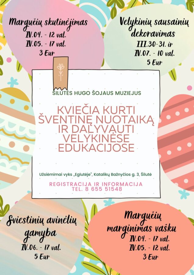Šilutės Hugo Šojaus muziejus kviečia kurti šventinę nuotaiką ir dalyvauti velykinėse kūrybinėse dirbtuvėse!